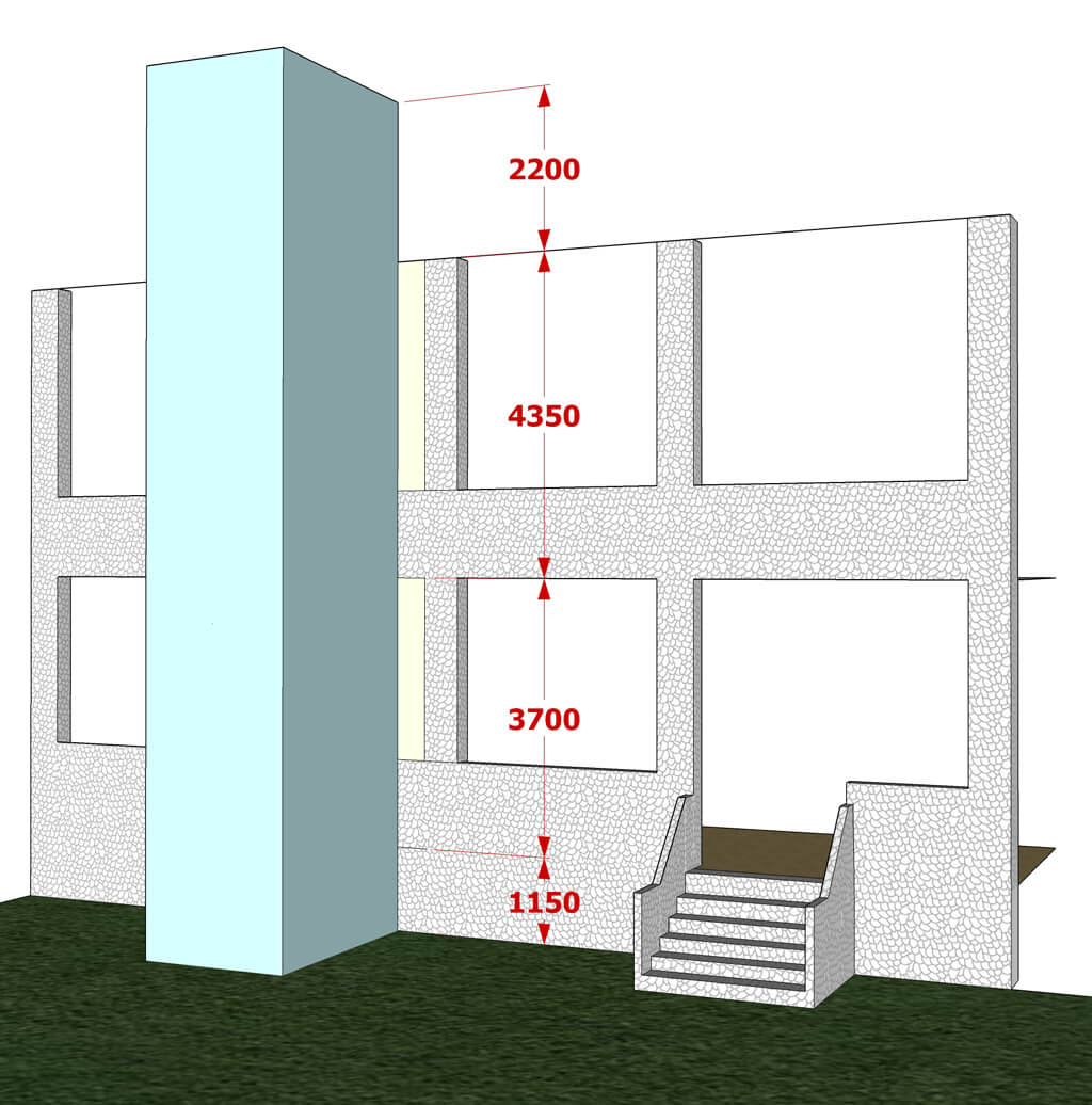 ขนาดของประตูหน้าชั้นกว้าง 2.00 เมตร x สูง 2.00 เมตร